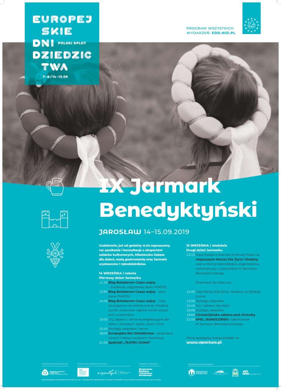 14-15 września 2019, Jarosławskie Opactwo – występy, mała gastronomia, rękodzieło. Program na dwóch plakatach – górny ujmujący wydarzenia w ramach całego Jarmarku, a dolny dla występów na scenie. W sobotę od mszy świętej w bazylice Matki Bożej Bolesnej (oo dominikanie) o godzinie 18:00 zacznie się nocny przemarsz z iluminacją świetlną. Jarmarkowi będzie też towarzyszyć pielgrzymka biegowa oraz Marsz dla Życia i Rodziny.