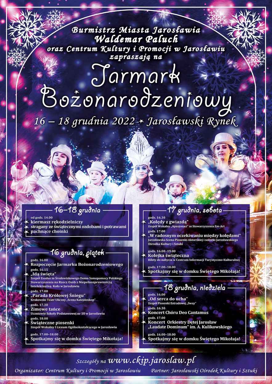 17.00 – „W radosnym oczekiwaniu między kolędami” koncert piosenek bożonarodzeniowych w wykonaniu Jarosławskiej Sceny Piosenki Aktorskiej i solistek Jarosławskiego Ośrodka Kultury i Sztuki