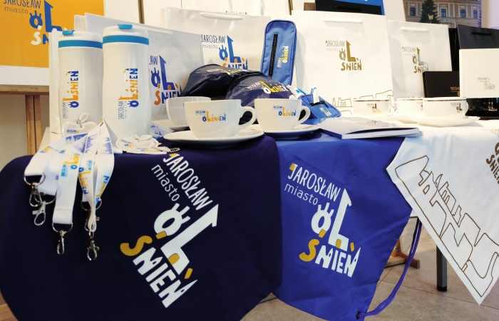 Nad nowym systemem identyfikacji miasta, mającym uzupełnić poważniejszy herb, prace trwały od kwietnia 2019 do lutego 2020 roku. Zespół składający się z 11 osób, pod przewodnictwem dr. Zbigniewa Chmielewskiego, zdefiniował kluczowe cechy Jarosławia, zaproponował słowa i pojęcia nadające się do przedstawienie w logo promocyjnym, wyselekcjonował przykładowe formy graficzne i przyjął założenia do projektowania. Po przeanalizowaniu ponad 230 wariantów znaku i hasła wybrano zestaw widoczny poniżej, autorstwa Agaty Dzięgielowskiej z JOKiS, z hasłem „Jarosław miasto olśnień”, sugerującym możliwość pozytywnego zaskoczenia odwiedzających nasze miasto.