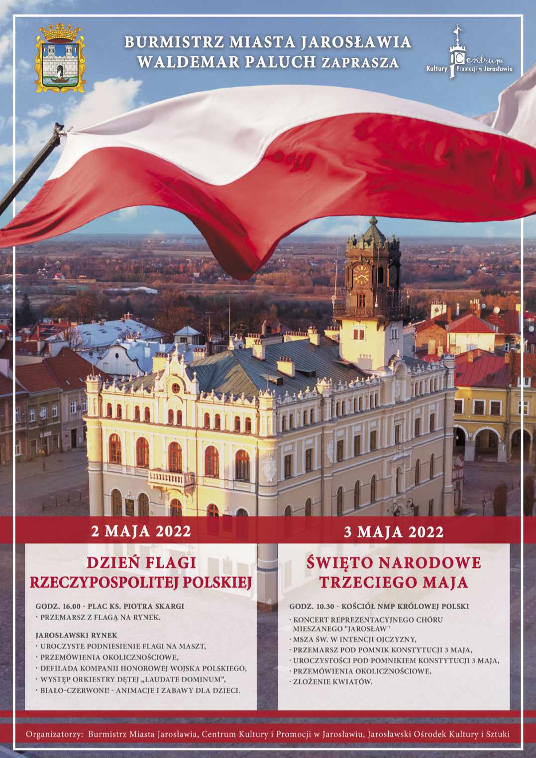 Burmistrz Miasta Jarosławia zaprasza do wspólnego świętowania Dnia Flagi RP oraz Święta Narodowego Trzeciego Maja.