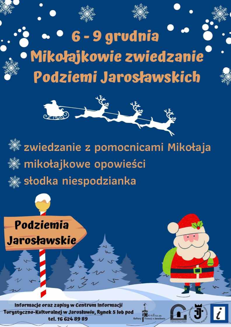 6-9 grudnia - zwiedzanie podziemi - plakat Oprócz zwiedzania, dzieci czeka także ogromna dawka radości za sprawą spotkania z pomocnicami Mikołaja. Nie obędzie się również bez słodkich upominków. Więcej na stronie CKiP. Link poniżej.