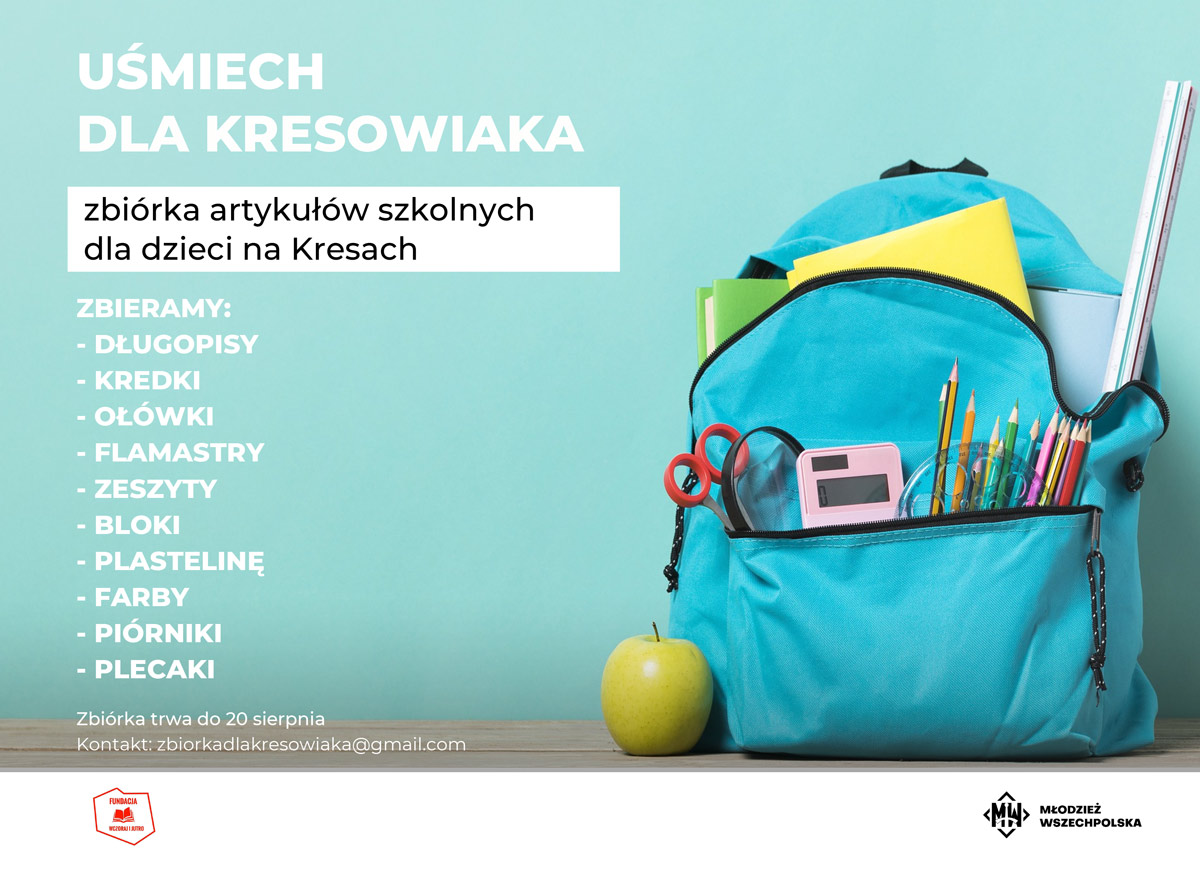 Na Podkarpaciu trwa zbiórka artykułów szkolnych dla dzieci na Kresach – „Uśmiech dla Kresowiaka” organizowana przez Młodzież Wszechpolską oraz Fundację Wczoraj i Jutro. Przybory szkolne takie jak: długopisy, kredki, ołówki, flamastry, zeszyty, bloki, plastelinę, farby, piórniki i plecaki można składać w kilku punktach w Jarosławiu:
